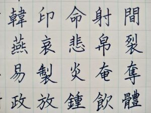 今の練習を振り返るとどちらかと言えば字形を整えたり一画ごとの点画に注力していたりするためか、お手本を確認したり書き終わった字を見返したりもしながらになっています。そのせいなのか書くペース的には安定していないというかまばらな感じがしています。中には書きやすい字もあったりもするので上手く書き進めている時とそうではない時も入り混じってしまい、書くペースがまばらなのかなと思うところです。